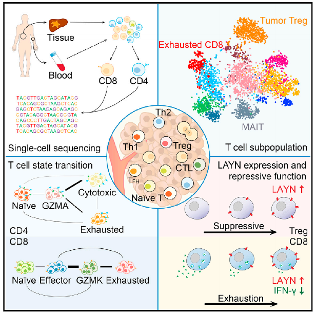 2017年,張澤民院士研究組,通過大規(guī)模單細(xì)胞測序技術(shù)對(duì)肝癌相關(guān)T淋巴細(xì)胞進(jìn)行分析,首次在單細(xì)胞水平上描繪肝癌微環(huán)境中免疫細(xì)胞圖譜,發(fā)現(xiàn)了肝癌免疫療法的潛在靶點(diǎn),也為我們從多角度系統(tǒng)性理解肝癌T淋巴細(xì)胞特征奠定了基礎(chǔ)。(2017,Cell,Landscape of Infiltrating T Cells in Liver Cancer Revealed by Single-Cell Sequencing)