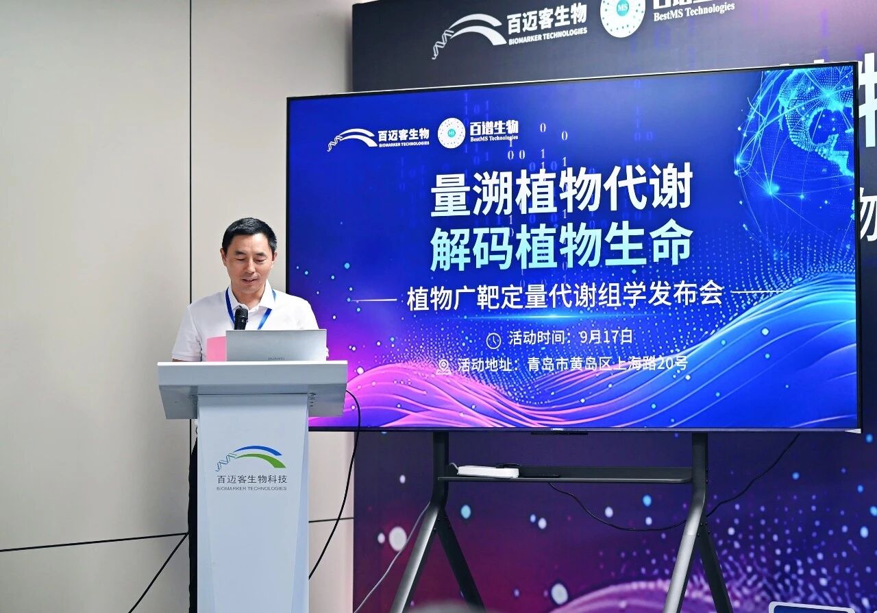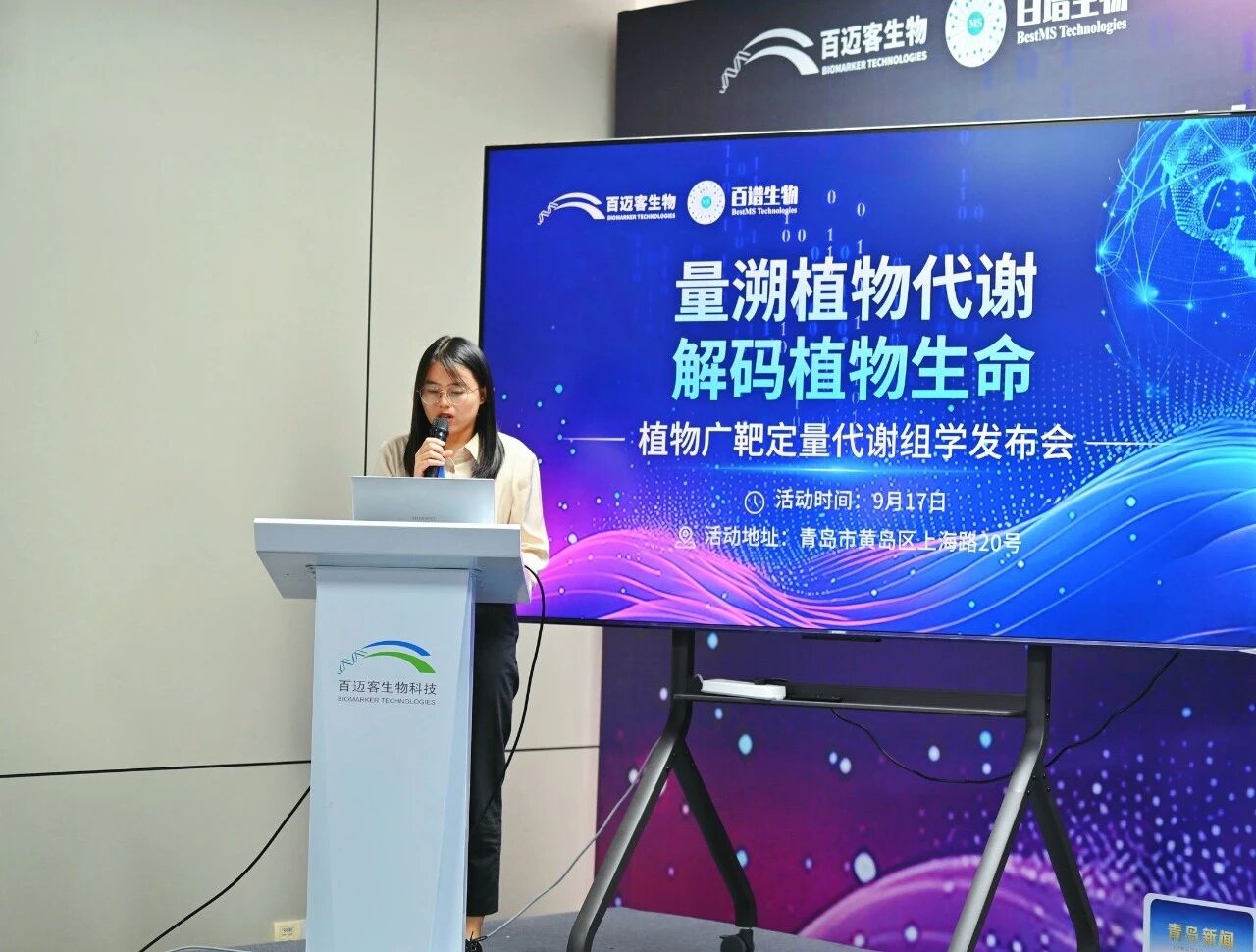 2025年9月17日,由百邁客生物與百譜生物聯(lián)合主辦的 “植物廣靶定量代謝組學發(fā)布會” 在青島隆重舉行。中國科學院海洋研究所段德麟研究員、北京大學現(xiàn)代農(nóng)業(yè)研究院王旭教授、中國科學院海洋研究所張立濤副研究員、SCIEX中國市場開發(fā)經(jīng)理方晶晶受邀出席,會議同步開啟線上直播,吸引超3000人次參與,引發(fā)行業(yè)廣泛關(guān)注。本次發(fā)布會推出的植物廣靶定量代謝組學產(chǎn)品,成功突破非模式植物研究瓶頸,為植物基礎(chǔ)研究與農(nóng)業(yè)產(chǎn)業(yè)升級注入全新動能。